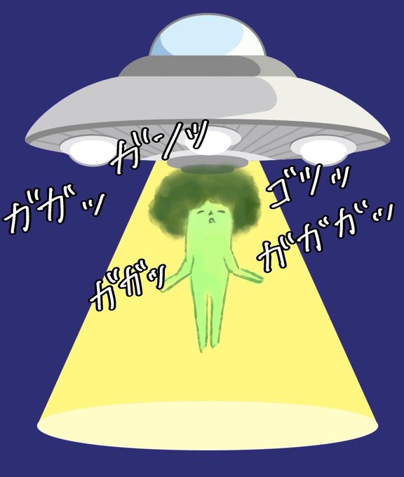 【ブロッコリーあるある33🥦】 UFOが連れてってくれない 🥦:「俺は宇宙人の非検体になるんだろうな...あぁ...えっ...?痛い痛い!!」 #ブロッコリーあるある #れんらくちょー #ブロッコリー #ひろしイラスト練習記