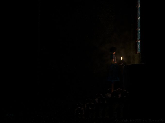 「消灯」-lights out- #3DCG #CG #illustration #digitalart #art #風景 #デジタルアート #Landscape #イラスト #鳥かご #ろうそく #陰影 #心象風景 #girl #imagery #絵描きさんと繋がりたい