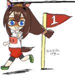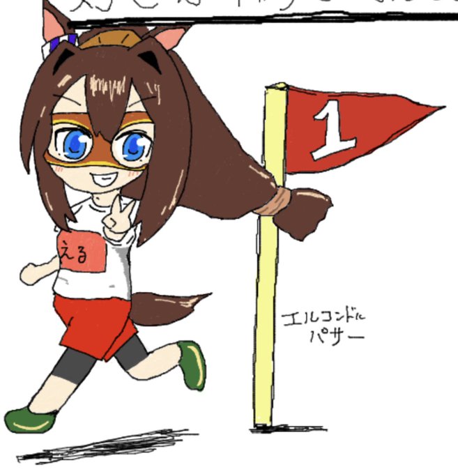 エルちゃん、お誕生日おめでとう🎊 いつも明るくやる気満々のエルエルに元気を分けてもらってます🥰 世界で最初の推しの君と出会えてよかった!!! #エルコンドルパサー生誕祭2023 #ろうエルファンアート