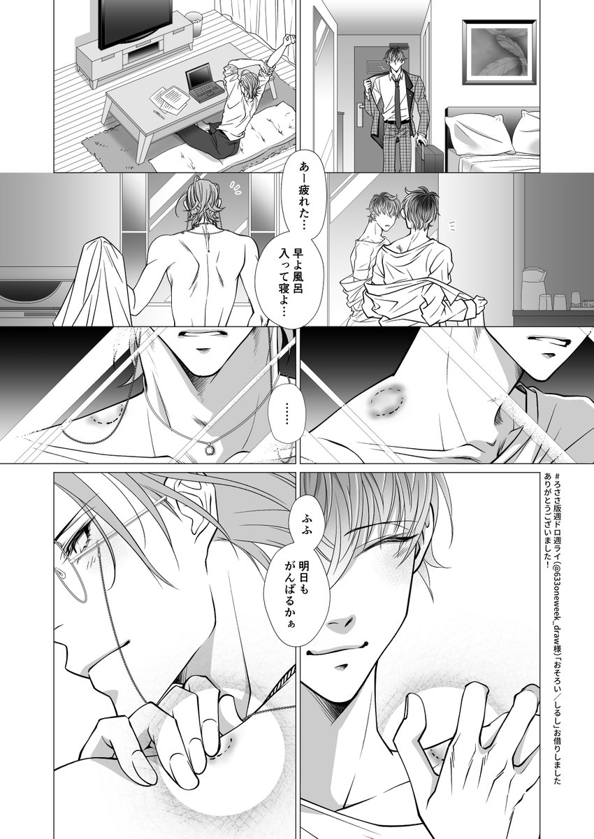 #ろささ版週ドロ週ライ 第66回お題より『おそろい』『しるし』お借りしました 主催者様いつもありがとうございます✨😌 問題ありましたらお知らせください🙇 高解像度トーン版は支部にて pixiv.net/artworks/10983… ご無沙汰しておりました 12題ぶり(!)