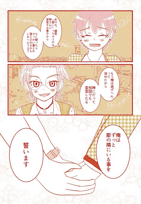 「誓い」「雷鳴」で参加させて頂きます!いつも素敵なお題をありがとうございます✨ 最後の最後に逃げてしまいそうになる簓の手を掴む盧笙を描いてみたかったので・・・! 6/30のwebオンリー「七転八起 wis comedy」に参加します!よろしくお願いします! #ろささ版週ドロ週ライ