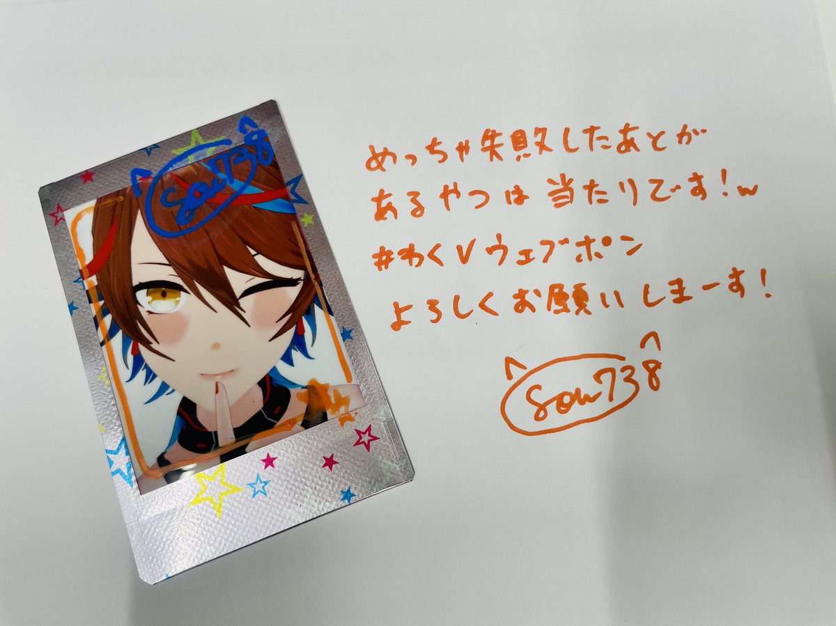 #わくVウェブポン SSRチェキ見本です! 楽屋で一枚描かせていただきました✨ センスがないので今日の共演者さんたちを参考にさせていただきました😂 是非気軽に回してみてください〜! webpon.net/shop/WV/plan/W… twitter.com/akihabara_lab/…