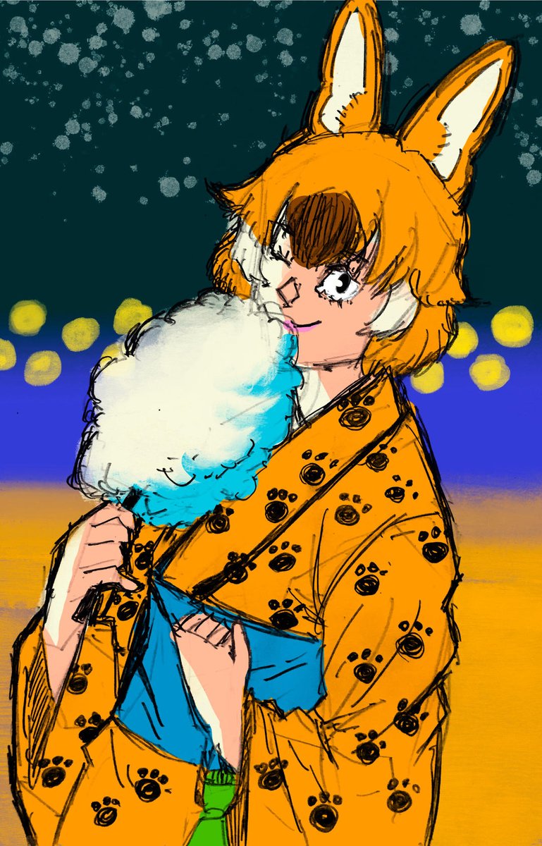美味しそうなものがいっぱいあって… #屋台 #いちごチョコ #わたあめ #イラスト #illustration #絵柄が好みって人にフォローされたい #冬の創作クラスタフォロー祭 #一日一絵 #1日1絵