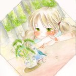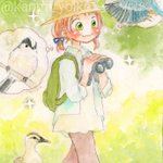 #わたしのちいさなたからもの 小鳥と人をテーマに描くようになったここ十数年、込める宝物は、ひたすら鳥への愛情です。 小鳥と人の間にある絆、信頼。お外の鳥たちへの尊敬と憧れ。おうちで共に暮らす鳥たちへの親愛と感謝。 大好きな小鳥と一緒にいたい、一緒にいられて幸せ、の気持ち🐥