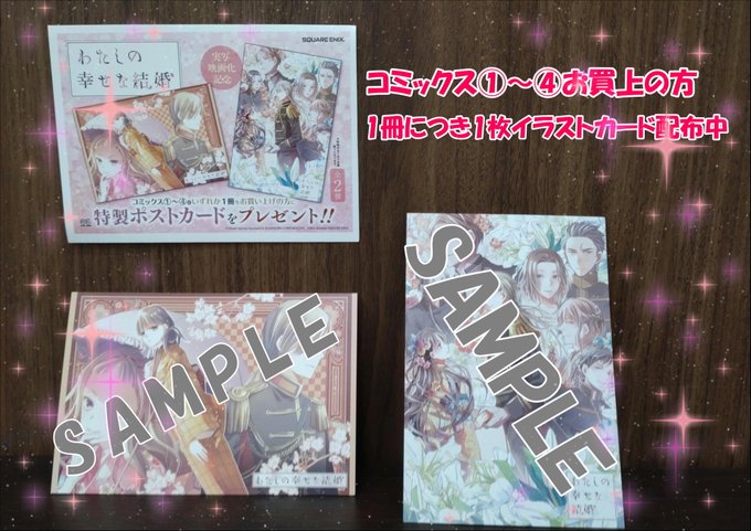 【特典情報】スクウェア・エニックス『#わたしの幸せな結婚①~④』お買上の方1冊に付き1枚イラストカードを配布中!全2種です!実写・アニメ化で大注目の作品です!※特典はなくなり次第終了です。ご来店お待ちしております(フジグラン緑井店) #高坂りと 先生 #顎木あくみ 先生