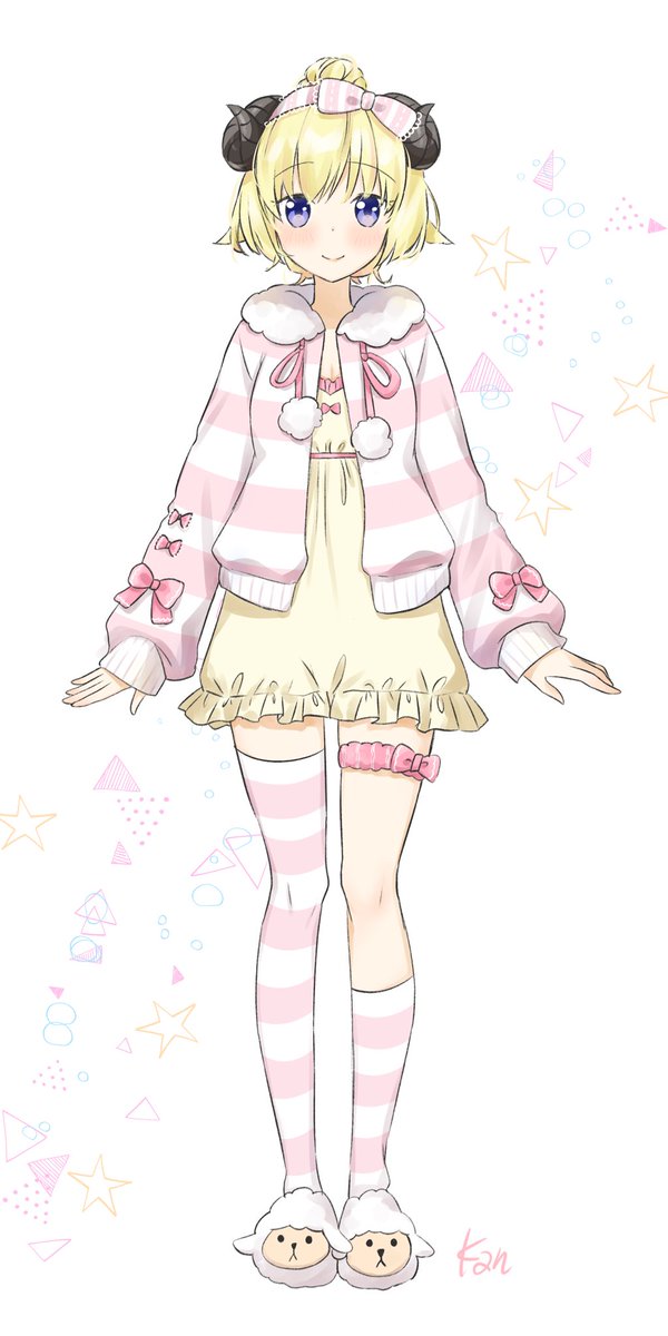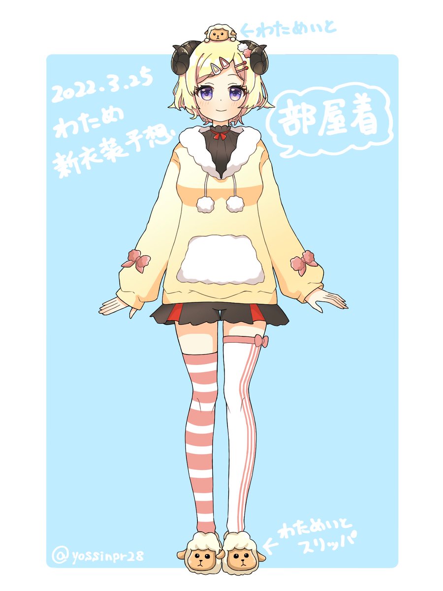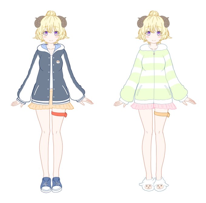新衣装楽しみすぎて予想イラスト描いてみました🐏頭のはお団子だと思うけどわためいとの可能性を信じて…予想は部屋着!背景ありとなし✏️ #角巻わため新衣装2022 #わため新衣装予想 #つのまきあーと
