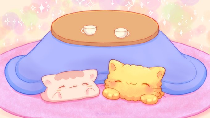おこたでなかよく、ぬっくぬく。 たのしくおしゃべりしましょ🥟 #ゆるいイラスト #イラスト #illustration #illustrations #ギョザー #わんたそ #えびてんにゃん