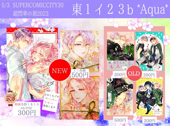 5/3超閃華の刻2023お品書き 東1ホールイ23b *Aqua* pixivはこちらです→pixiv.net/artworks/10767… 相互フォロワーさんでしたら、色紙以外はお取り置きいたしますのでお気軽にお声がけください! #わんふる0503
