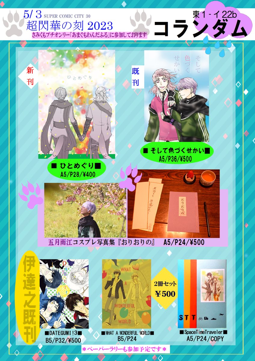 5月3日 超閃華の刻2023 さみくもプチ「あまぐもわんだふる」 おしながきです(1/4)#わんふる0503 --- 東1ホール イ33a|Woainii pixiv.net/artworks/10748… --- 🌸ペーパーラリーに参加させていただきます🐕🐕✨(1会計につき1枚のお渡し) 詳細とお願い⬇️
