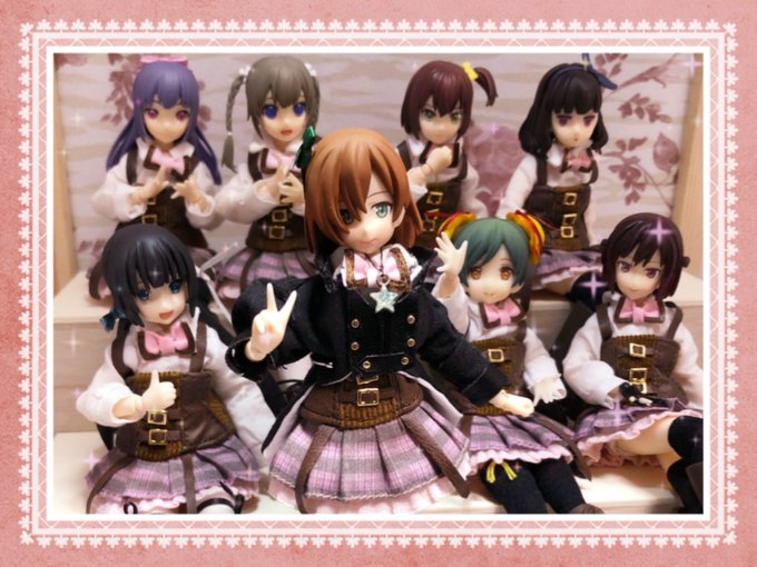 ルド女、ありがとう✨ 我が家のドールでアイアンサイドを結成する事が出来たので記念に📸 アイアンサイドのジャケットは発売まで待てず自作しました!(発売後に枚数揃えるのも大変そう💦) 初めてジャケットを着た花蓮を祝うメンバーの絵です💚 #ルド女 #アサルトリリィドール部 #アイアンサイド