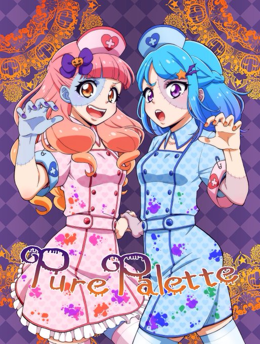 さくやちゃんかぐやちゃんお誕生日おめでとう🌑🌕 梅雨っぽいしっとりした雰囲気でお祝いです☔ 私服もお揃いコーデでいつも仲良しカワイイんじゃよ☺️☺️ #aikatsu #アイカツフレンズ #白百合さくや生誕祭2023 #白百合かぐや生誕祭2023