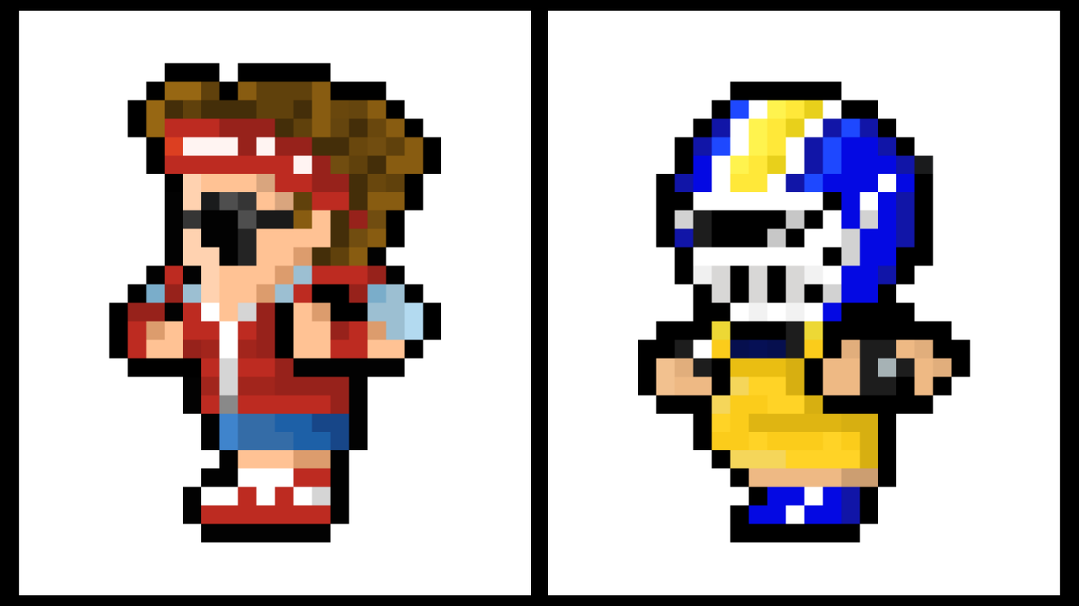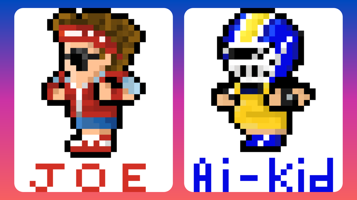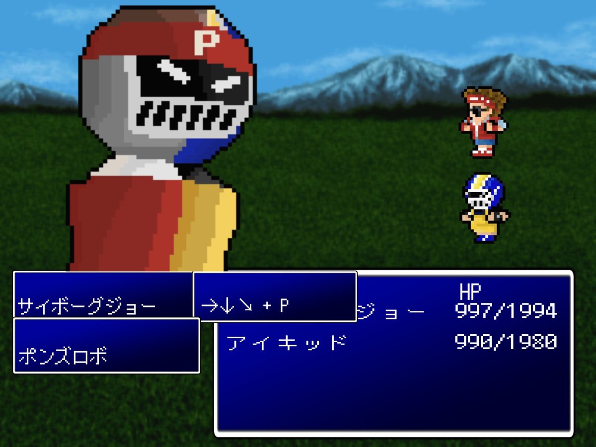 ファミコン版ファイナルファ◯タジー風ドット絵 【 8bit ザ・リーサルウェポンズ 】 描きました👍☺️ 1枚目の背景とウインドウ素材だけ配布素材お借りしてます⚠️ 結構上手く描けた気がしてるw😁 #ザ・リーサルウェポンズ #リーサルウェポンズ #リーサルウ絵ポンズ #サイボーグジョー #アイキッド