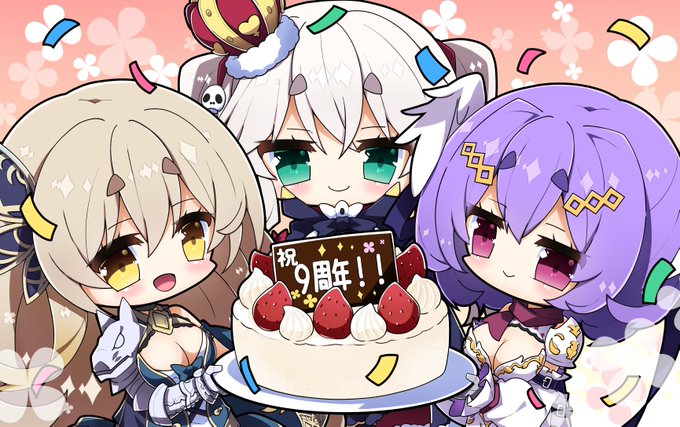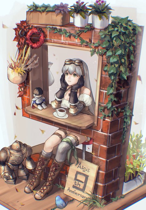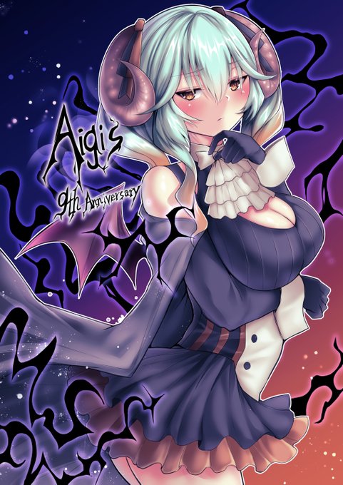9周年のお祝いイラスト。いつものサイズ感で背景のアレコレ悩んだものもあるので、こっちも供養のため上げさせていただきます_(._.)_タグ失礼します🙏 #アイギスお絵かき #アイギス9周年アートコン