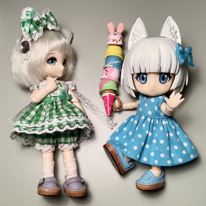#今夜のドール撮影120分一本勝負 今夜のお題は【あいす】過去 三段重ねアイス:merci×merci @kino_anry 様 ソーダイアイス:コグマホールディングス @tanpopo31 様 #アイスクリームの日
