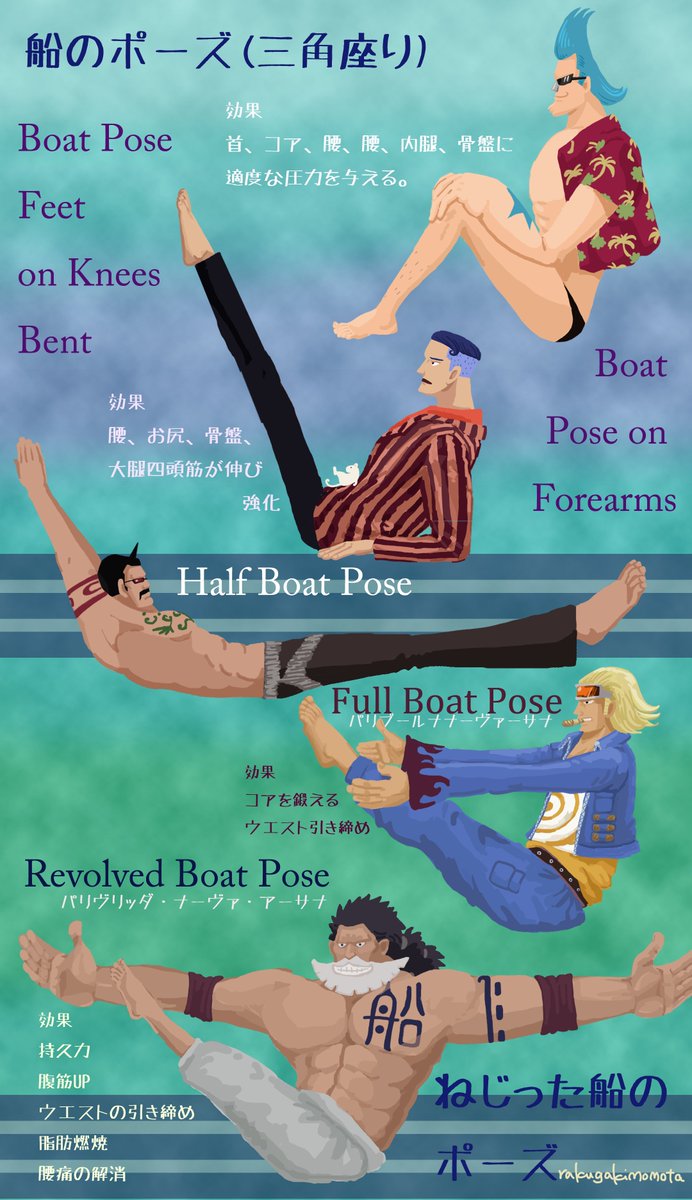 #パウリー生誕祭2022 お誕生日おめでとうございます🎉 #ガレーラカンパニー の船大工ですから 本日のおうちヨガしませんか? #船のポーズ #ねじった船のポーズ 市長であり 社長でもある #アイスバーグ さんと ついでに #ティラノサウルス ww🚢ww #onepice #ヨガ #イラスト