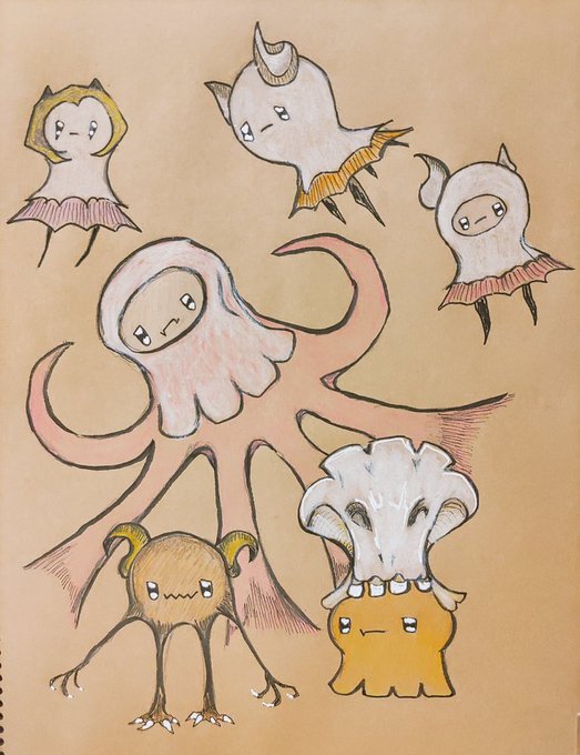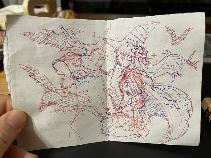 時々仕事の休憩時間にこうやって紙の切れ端使ってボールペンでアイデア描き留めたりしてます🔏🎃 カラスやコウモリ、黒猫もいるよ〜🦅🦇🐈⬛🐾 #イラスト #オリジナル #アイデアスケッチ #ハロウィンイラスト #紙の切れ端とボールペン #ハロウィン起源はアイルランド #仕事の休憩時間の合間に