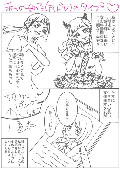 5年以上現場オタ(乃木坂・48)した 女アイドルオタの偏見にまみれた 女アイドルオタクのあるある④ 私の女の子(アイドル)のタイプ 好きになったらとことん尽くします #アイドル #アイドルのいる生活 #漫画が読めるハッシュタグ #マンガが読めるハッシュタグ