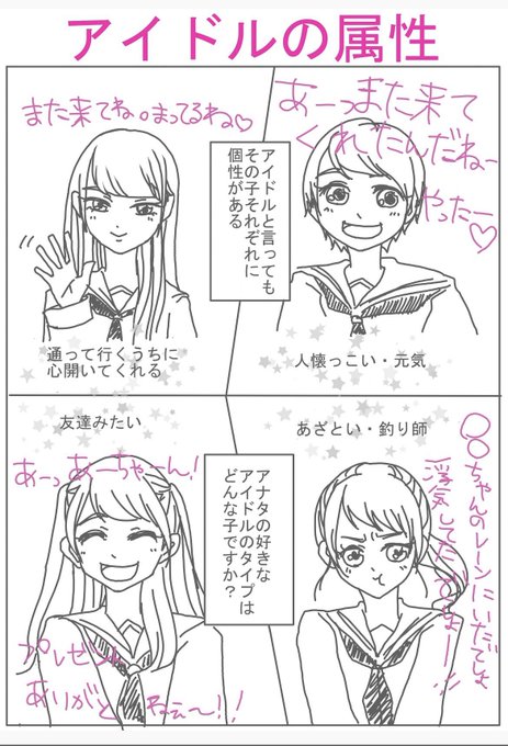 5年以上現場オタ(乃木坂・48)した 女アイドルオタの偏見にまみれた 女アイドルオタクのあるある⑤ アイドルの属性(個性) 最初にハマったのはやはり、釣り師というかあざとい子だった あなたの推しは? #アイドル #アイドルのいる生活 #漫画が読めるハッシュタグ #マンガが読めるハッシュタグ