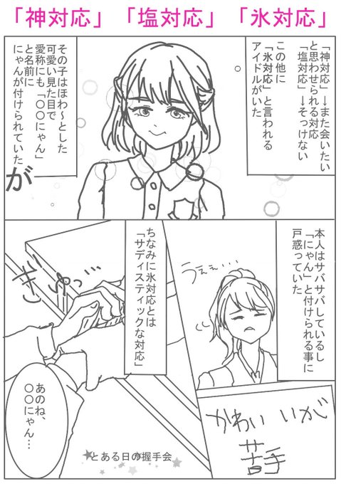 5年以上現場オタ(乃木坂・48)した 女アイドルオタの偏見にまみれた 女アイドルオタクの物語⑦ 神対応・塩対応・氷対応 この子が誰か分かったら君もオタクだ #アイドル #アイドルのいる生活 #漫画が読めるハッシュタグ #マンガが読めるハッシュタグ #ドルオタ