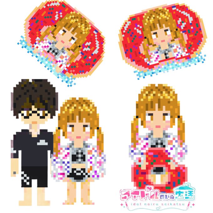 みやびくん🧀🐮🕊 もかちゃん🌝 もタクの皆様、お疲れ様です。 今日は早々とお仕事終了✨ 暑かったのでプールのドット絵を作成しました。温かい目で見て下さい😅 少しでもアイ生、みやび君、萌香ちゃんが広まる事を祈って😌 #アイドルのいる生活 #みやもかダイアリー #ドット絵 #ピクセル
