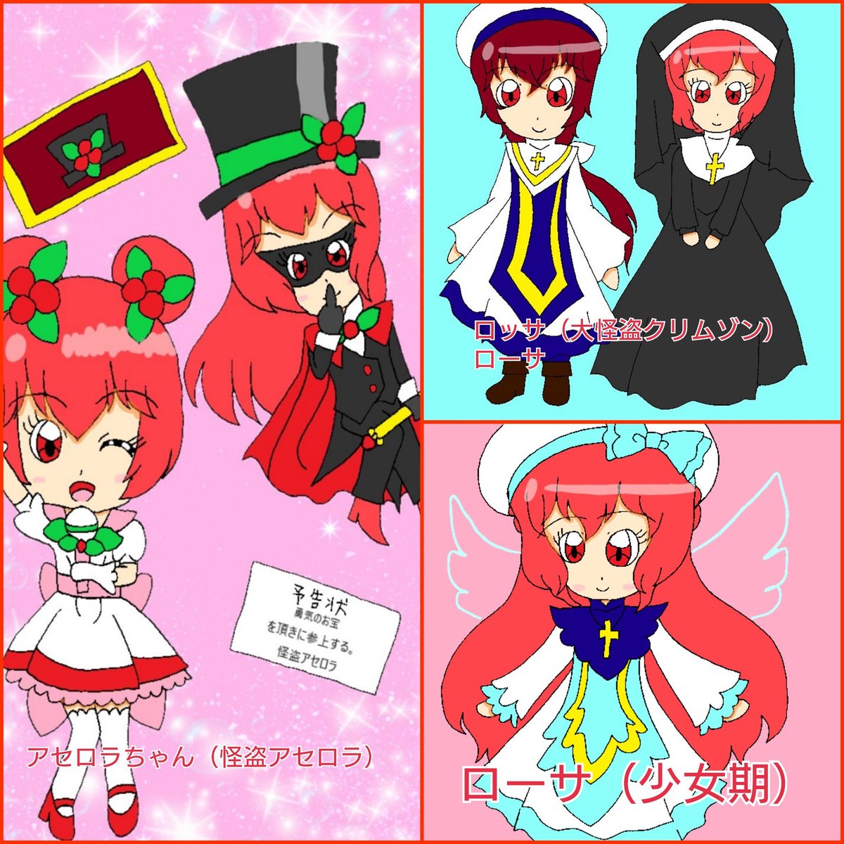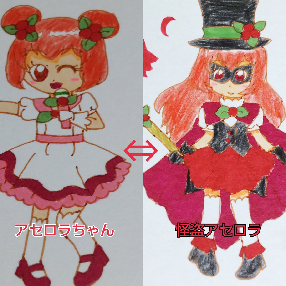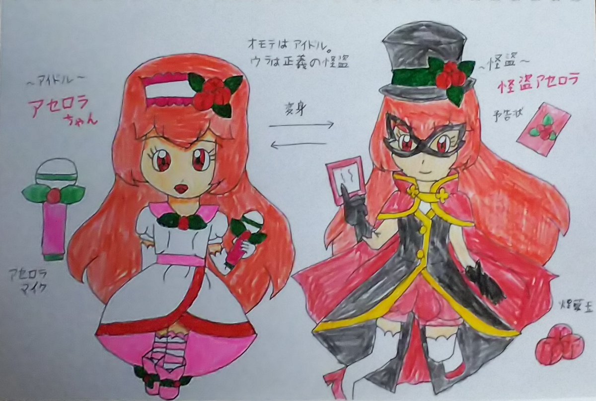 #今月描いた絵を晒す #アイドルのアセロラちゃん #コスプレのアセロラちゃん #アンパンマンオリキャラ #オリキャラ #イラスト #オリキャライラスト #アナログイラスト #デジタルイラスト コスプレのアセロラちゃんとオリキャラを描きました。