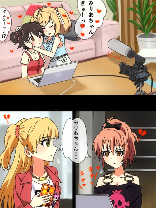 はぁとちゃん♡みりあに城ヶ崎姉妹脳破壊☆Kiss!描いたよ(修正) #アイドルマスターシンデレラガールズ #赤城みりあ #城ヶ崎美嘉 #城ヶ崎莉嘉 #佐藤心 #U149 #アイドルマスターシンデレラガールズU149 #百合