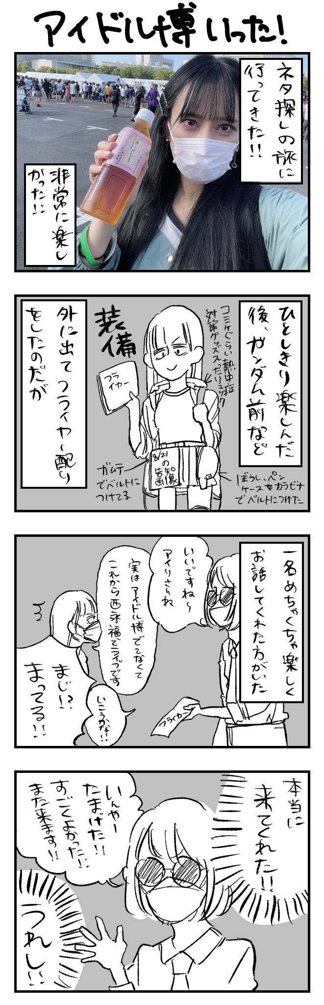 『とあるアイドルの事情』66 また今日の日記です! #アイドル博 があったのでフライヤー配り(勿論会場外)をしてきたのですが… #0821会心ノ一撃新宿ロフトワンマン #漫画が読めるハッシュタグ #4コマ漫画