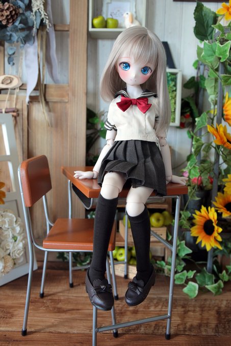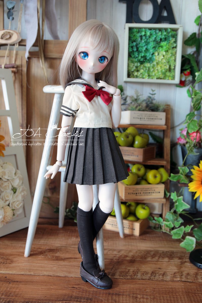 #アイドール札幌 【ミニっ子半袖セーラーセット&ひざ下ソックス/チャコール】MDD(~M胸)対応 MDDサイズのチャコールは新色です。セーラーの生地にアイボリーを使いスカートはチャコールカラー。ソックスはショコラカラーを使用しています。上下ともファスナーで着脱可能。#TOAClaris