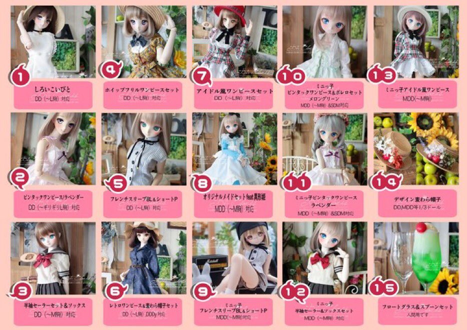 明日の販売リストです。ブースにも価格表として貼っておきます😊ご購入時は商品名でも、番号でおっしゃっていただいても結構です。番号でお申し付けになる際はサイズ(DD、MDDなど)間違えにお気をつけください。#TOAClaris #アイドール札幌