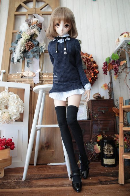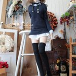 #アイドール福岡 『ニット&シャツワンピースセット』 &DD (〜L胸)対応。水色ストライプのシャツとネイビーカラーのセーターのセットです。以前ワインレッドで制作していた同アイテムの色&素材違いです。ネックリボンに雪の結晶のチャームをつけました☺ 今回でこの素材は最後となります#TOAClaris