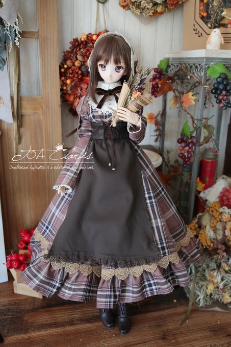#アイドール福岡『ロイヤルタータンメイドセット』 DD(~L胸)対応。ピンクアーモンドの落ち着いた色合いのメイドセットです。ショコラカラーを合わせて丁寧に制作しました。 東京ほど多くはないのですがなんとかまとまった数制作できましたので持っていきます。よろしくお願いします。#TOAClaris