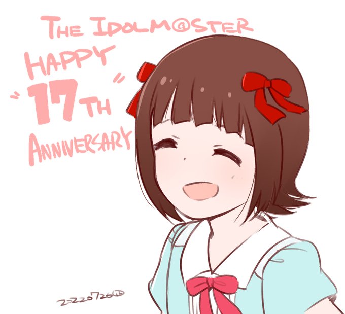 アイドルマスター17周年おめでとうございます🎉 17歳青春真っ盛りな周年であるとともに、真や雪歩、春香とも、ついに!同い年ですよ、同い年!!! 来年の18歳、315の担当である咲ちゃんと同い年になるまではアイマスまだまだ応援です🍒 #アイドルマスター17周年 #アイマス17周年