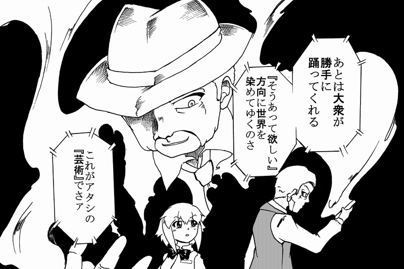 【更新】アインバインの平日【告知】 36話5ページ更新 大衆は見たいものを見たいように見、 聞きたいことを聞きたいように聞く。 彼はそれを少しつつくだけ。 ほんの少し後押しするだけ。 #アインバインの平日 #漫画が読めるハッシュタグ 【自サイト:pigslicer.web.fc2.com/einbein036.html】