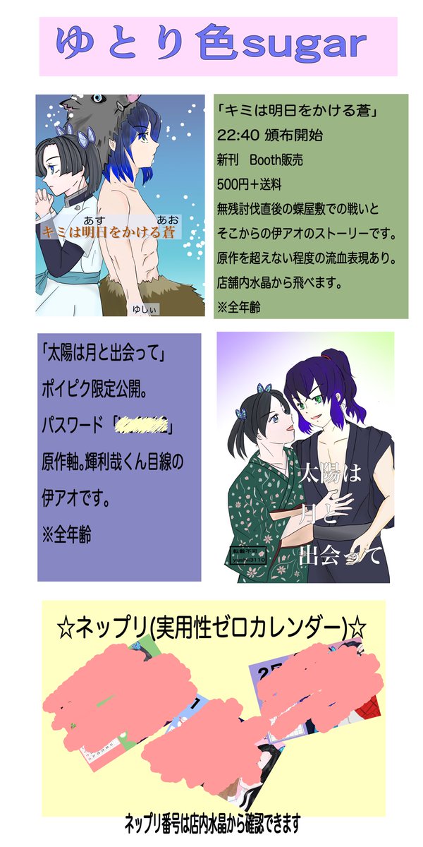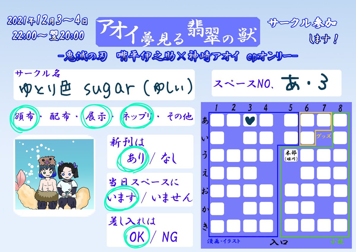 #アオイ夢見る翡翠の獣 12/3.4開催の伊アオWebオンリーにサークル参加いたします!サークル名は「ゆとり色sugar」です。新刊、新作漫画の展示、ネップリは三枚ご用意いたしました!お気軽にお越しください♥️