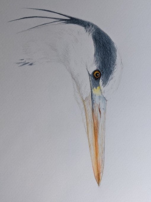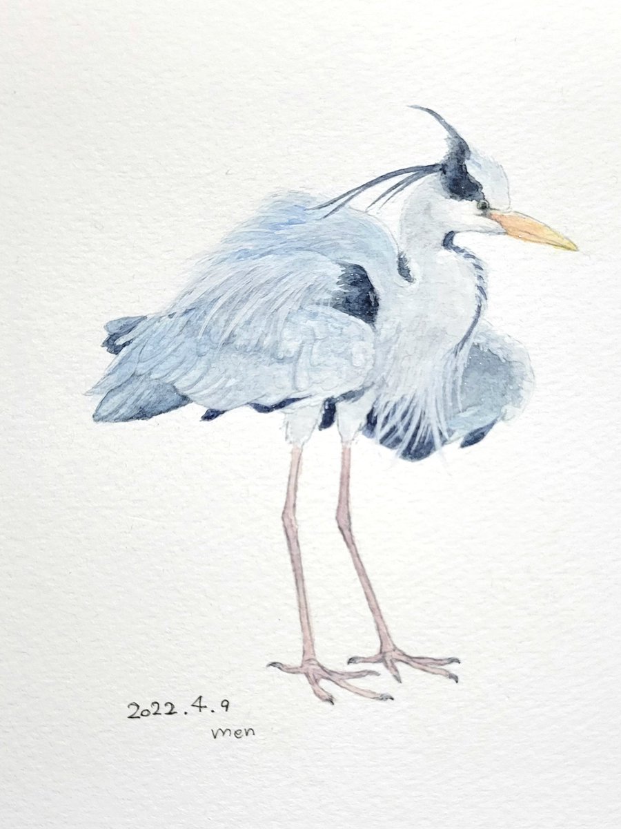 完成しましたー。春を待っていたはずなのに、先走って初夏風味。 #色鉛筆イラスト #創作イラスト #色鉛筆画 #オリジナルイラスト #野鳥 #アナログイラスト #アナログ絵を流してアナログ民を増やそう #絵描きさんと繫がりたい #絵師さんと繋がりたい #アオサギ