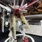 #ガンプラの画像を貼るとRTされると聞いて #アカツキガンダム 背負いもの完成とします、ほぼエールだけどこれくらいが好きやわ、むしろソードパックくらいシンプルなランドセル背負わせたいわ。 あとはプラ板で適当にディテール入れます。