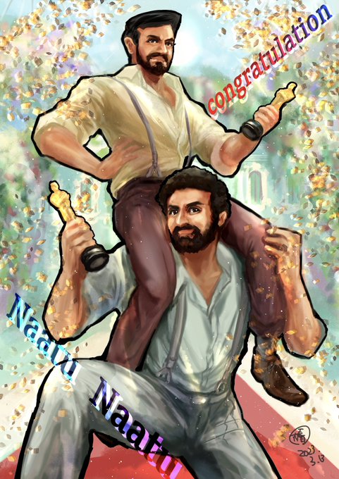 #RRRForOscars #アカデミー賞 獲得おめでとうございます🍾🎊🎉㊗️☺️‼️ #Oscars95 RRRの音楽を聴くと力が漲ります🤩💪RRRに関わる全ての皆様へ日本🇯🇵より感謝と愛を込めて😆✨ #Oscars95 @RRRMovie @ssrajamouli @tarak9999 @AlwaysRamCharan @mmkeeravaani #NaatuNaatuForOscars #NaatuNaatu