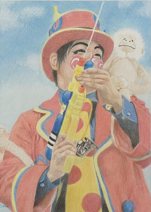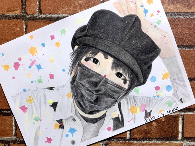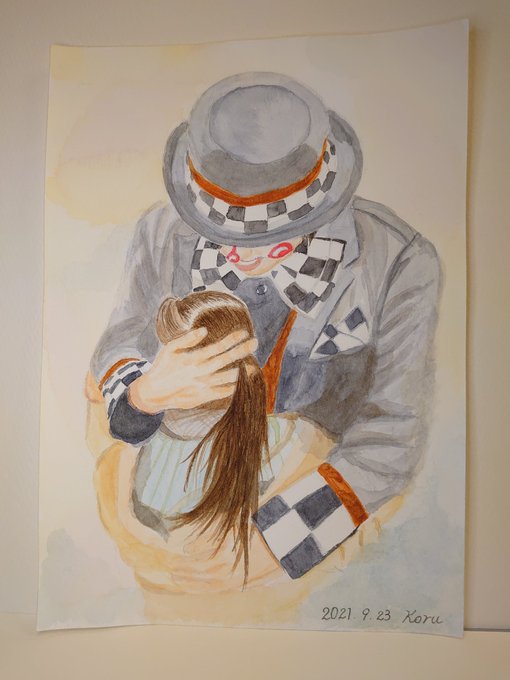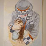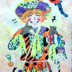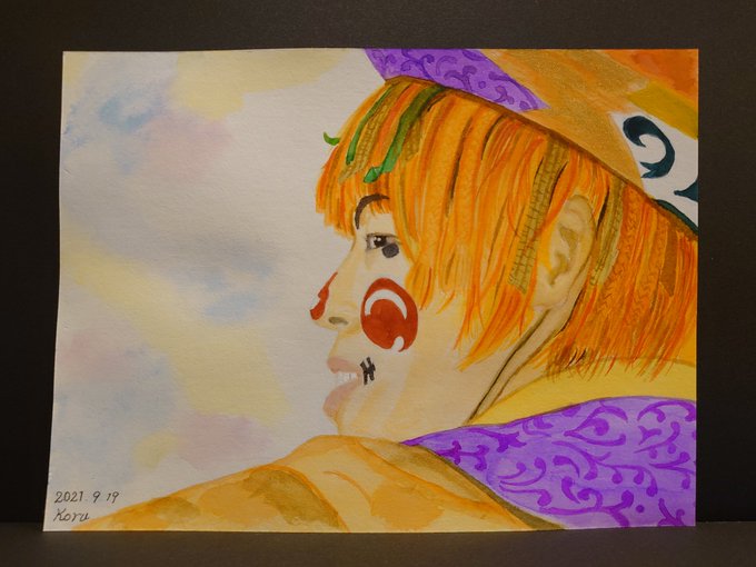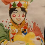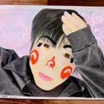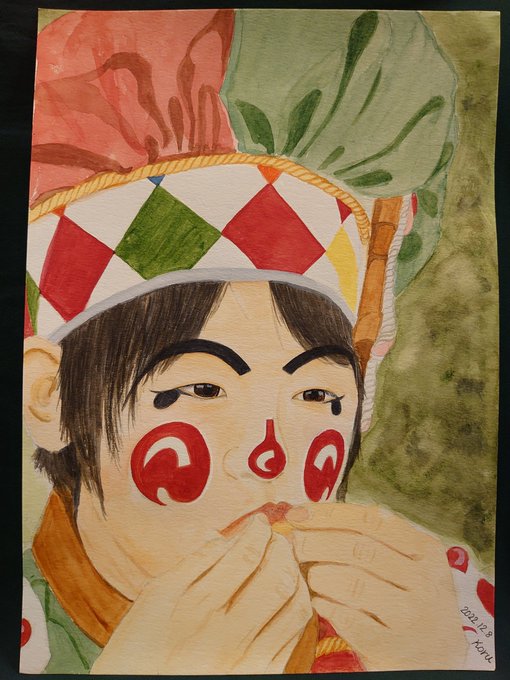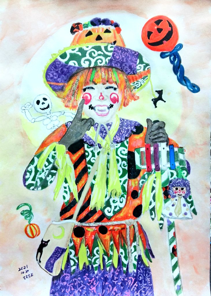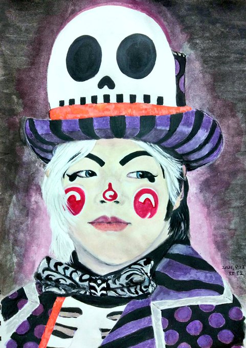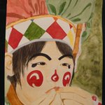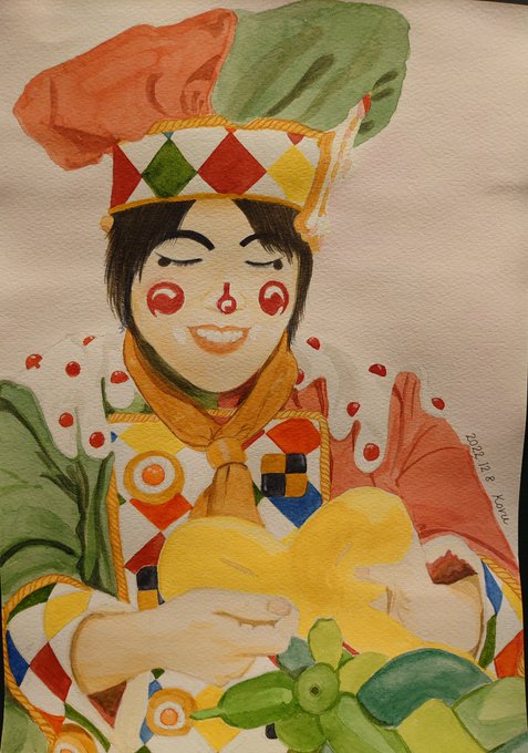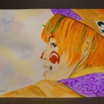 久しぶりに描いた✨🎨 #魔法使いアキット #アキットイズム #画家さん 服の柄が足りてない😱 #水彩画 百均の絵の具と筆で😁 #アイラインと眉は筆ペン😆 #勝手に夏のアキット祭り に参加してもいいですか? お写真じゃないけど…