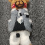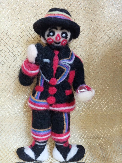 お友達に送る為に作った子なんだけど、しれっと魔法使いさんの誕生日ツィートにも使わせてもらったw 因みに左手に持っているシャボン玉は本物の水晶です。(天然石オタクなので家にやたらあるw)お友達の御守りになってくれるかな?(*^^*) #魔法使いアキットさん #アキットイズム #羊毛フェルト