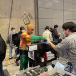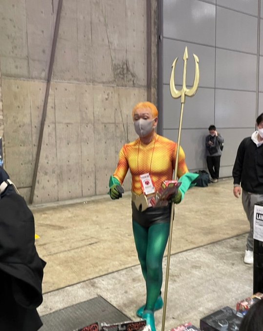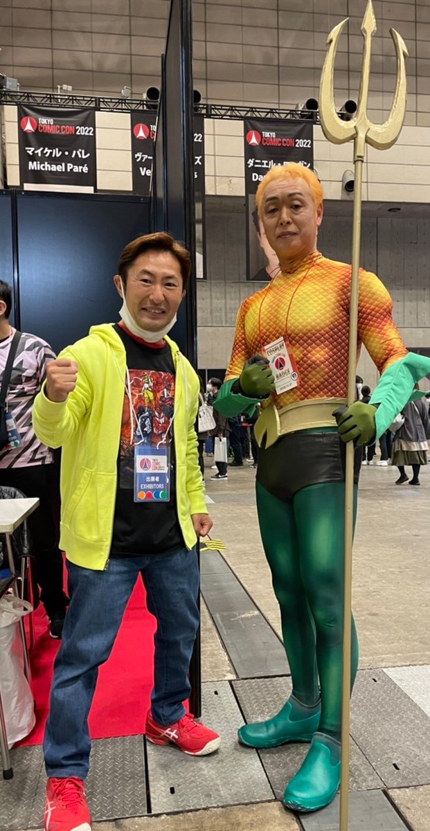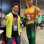 #東京コミコン2022 オモチャブースでインアクションのゲッターロボ(安価)を発見して、素になりホクホクして購入している所を友人に📷撮られるアクアマン💦 #東京コミコンコスプレ #アクアマン #AQUAMAN