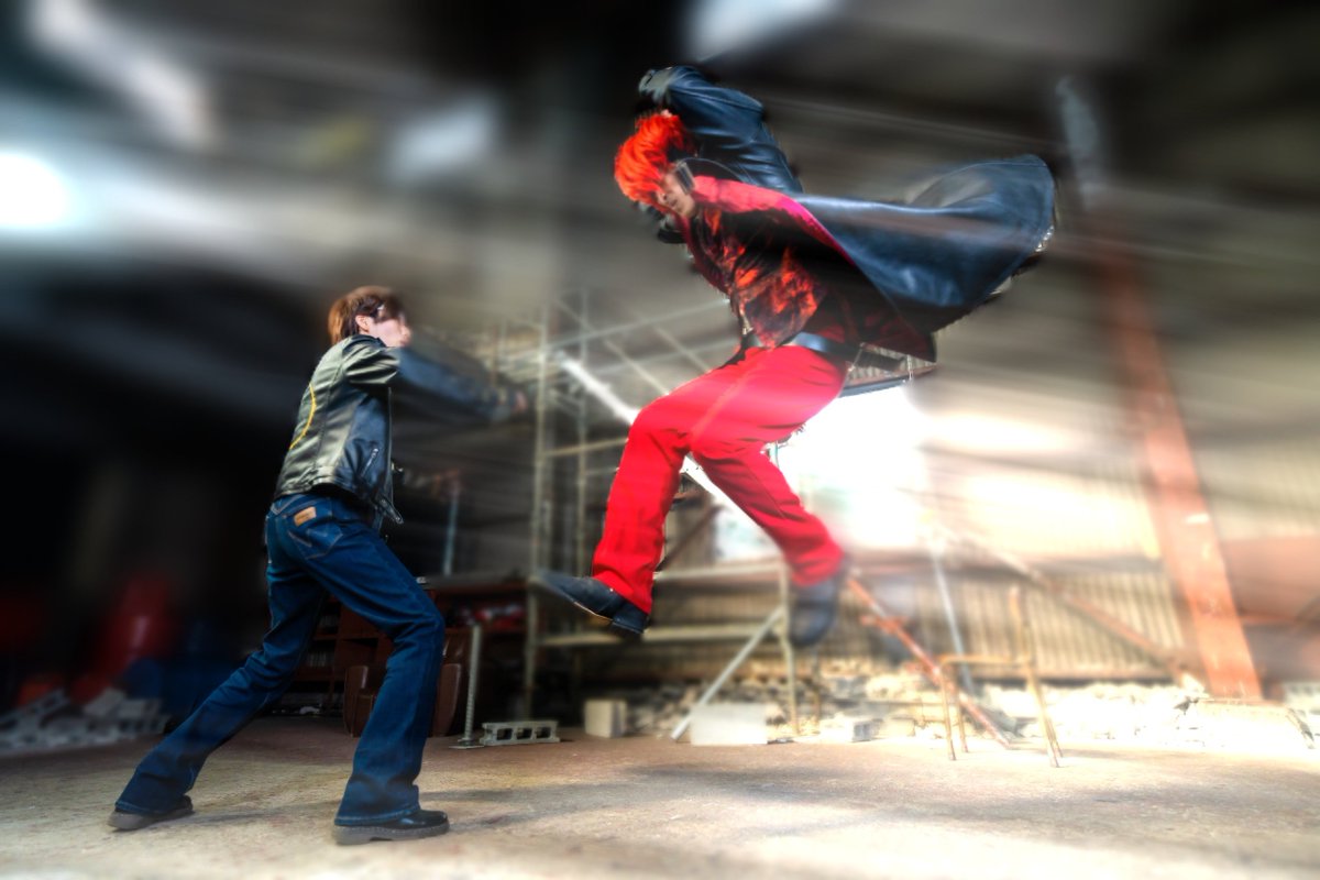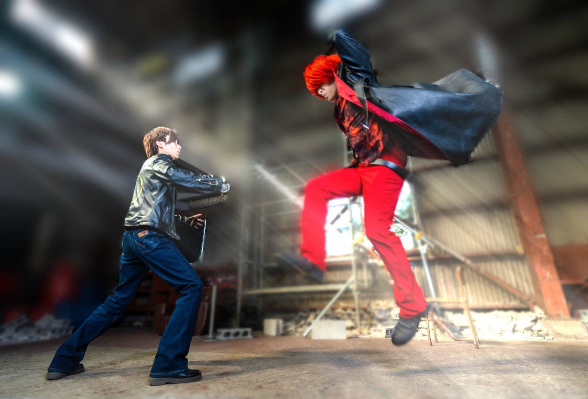 #麻宮アテナ生誕祭 という事で、リョウとのバトルを。 アテナおめでとー!! アテナ:ゆきすいっち | リョウ:桜庭仁 | 📸VALKEN_ZERO #麻宮アテナ生誕祭2023 #アクション併せ2022_10_1