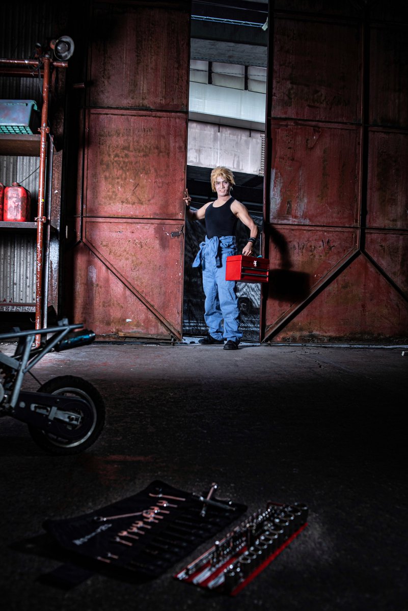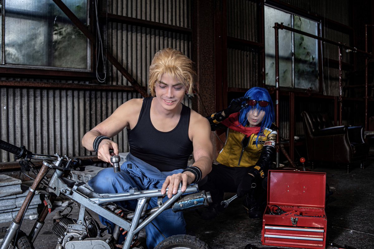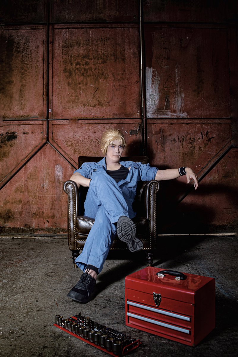 初公開、リョウの趣味であるバイクレストアのつなぎ姿(捏造) クローネンとの特殊エンディング繋がりなんだそうで…昔コスしてたいい男ツナギが役に立ちました😆 工具類は重くて肩トレに役立ちそうでしたw #アクション併せ2022_10_1 クローネン:@yamyam1083 📸@miton4000