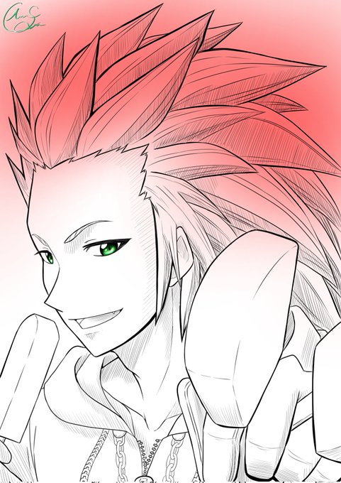 一週間遅くなっちゃったけど💦 もなかさん(@twilighttown13 )お誕生日おめでとだからきゅんですます❤🎂🎉 何回か藤原さんのお話ししてたので、初描きでアクセル描いてみました😙描けて私も嬉しい♪#キングダムハーツ #アクセル #落書きギルド #みんなで楽しむTwitter展覧会 #絵描きさんと繋がりたい