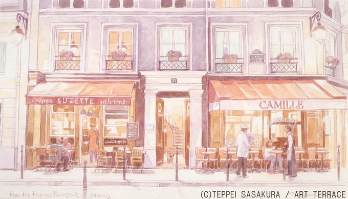 instagram.com/p/CbD7G48PjF5/ 本日はホワイトデー💐✨ 笹倉鉄平 Teppei Sasakura 『マレでのひととき~Un Moment dans le Marais』 2008年 笹倉鉄平ちいさな絵画館 kaigakan-teppei.net #笹倉鉄平 #画家 #絵 #アクリル淡彩 #ホワイトデー #whiteday #男性からのプレゼント #花束 #フランス #パリ