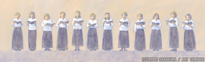 🎵原画(#アクリル淡彩)を展示中 笹倉鉄平 Teppei Sasakura 『合唱の仲間~Chorus Group~』 2016年 笹倉鉄平ちいさな絵画館 kaigakan-teppei.net #笹倉鉄平 #アート #絵 #アート好きな人と繋がりたい #音楽好きな人と繋がりたい #合唱団 #女性コーラス #コーラス #合唱好きな人と繋がりたい