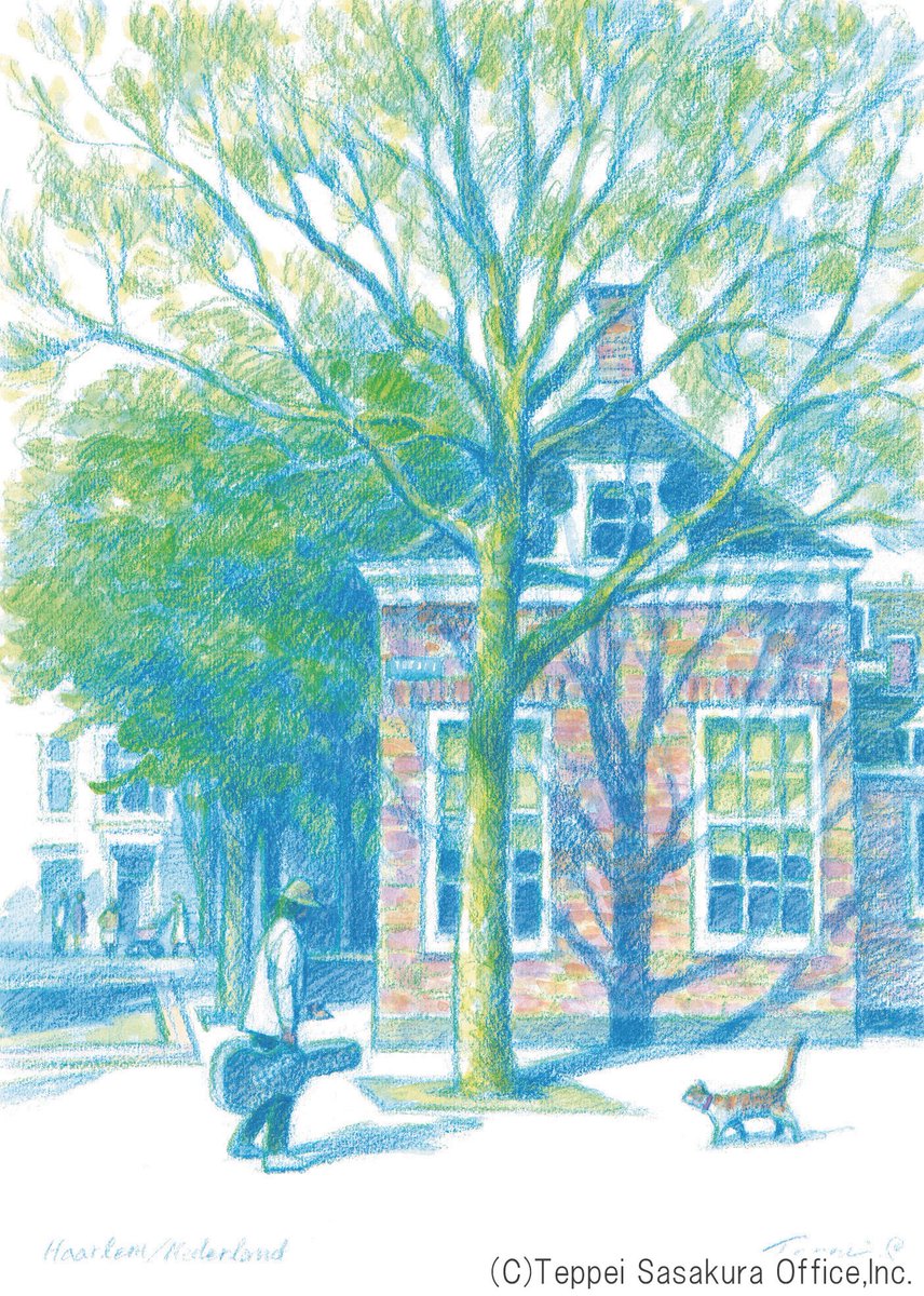 🌟新作原画(#アクリル淡彩)を展示中 笹倉鉄平 Teppei Sasakura 『午後の陽ざしと樹の影と~Afternoon Scene in Haarlem~』 2022年 #オランダ🇳🇱 「グリーティングカード」ございます 笹倉鉄平ちいさな絵画館 kaigakan-teppei.net #笹倉鉄平 #画家 #アート #絵 #アート好きな人と繋がりたい