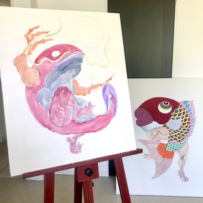 ペソペソ魚類描いてます。(どちらもまだ途中) 2021年の夏から画家やっています。 柴田亜美 ⬇️今までの作品🎨 book-komiyama.co.jp/booklist_featu… #art #アクリル画