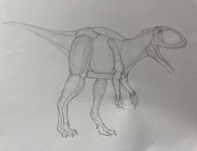 #絵柄が好みって人にフォローされたい 最近描いたやつ こんな僕の描いたやつでも誰かの好みに刺さって欲しい!! #ヤンチュアノサウルス #アクロカントサウルス #カルカロドントサウルス #エパンテリアス