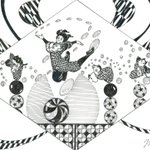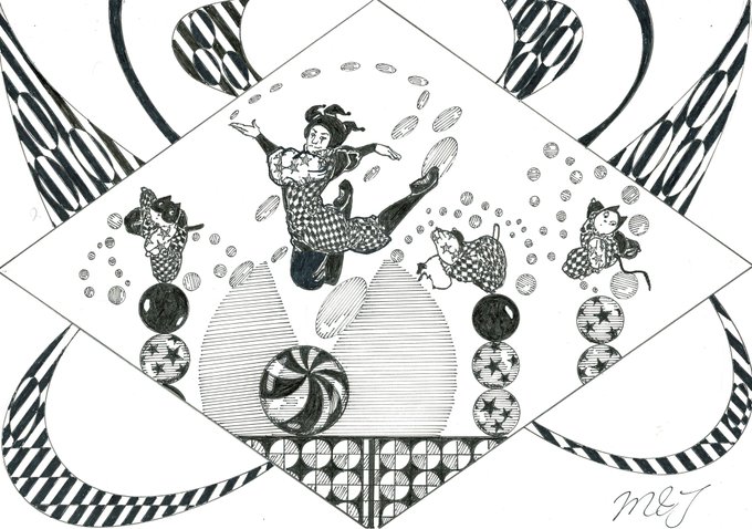 🎪🃏😸😺🐶フロアダンスをする、《道化師と陽気な仲間たち》 🕺🤸🕺MOVEMENT🕺🤸🕺 #アトリエの系譜S #道化師と陽気な仲間たち #アナログ #モノクローム #オリジナルキャラクター #マンガスタイルイラスト #挿絵 #picturebookartwork #アクロバット #フロアダンス #道化師 #猫 #犬 #movement
