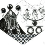 ☀️太陽☀️ 🎪🃏😸😺🐶《道化師と陽気な仲間たち》によるアクロバット #アトリエの系譜S #道化師と陽気な仲間たち #オリジナルキャラクター #アナログ #モノクローム #ペン画 #mangastyleillustration #picturebookartwork #道化師 #猫 #犬 #アクロバット #太陽